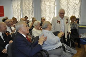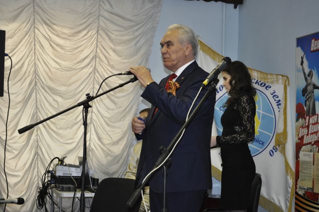 хозяйка праздника с большой теплотой поздравила ветеранов Великой Отечественной войны, тружеников тыла, детей войны, всех присутствующих членов Землячества с Великом праздником, пожелала ветеранам оставаться ещё долго в строю. Не забыли помянуть, ушедшего в октябре 2014 года из жизни, ветерана войны, члена РОО ЗСЗ, Героя Социалистического Труда, бывшего Министра Геологии РФ Ровнина Льва Ивановича.