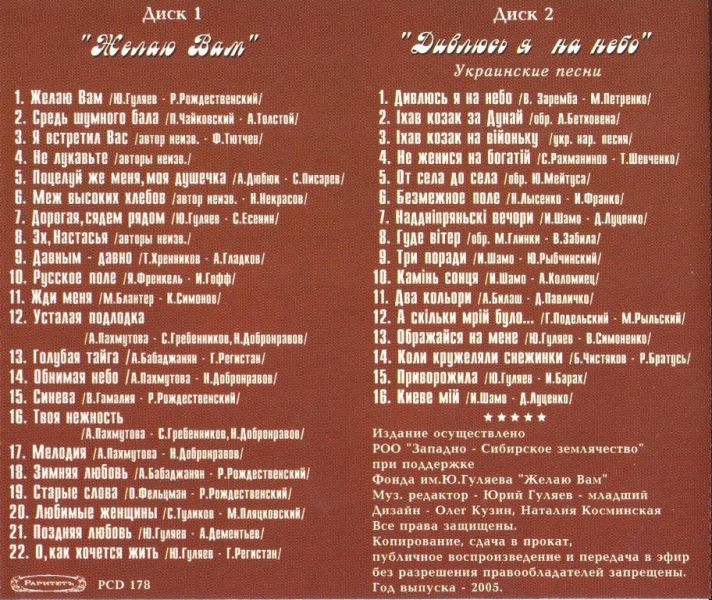 Юрий Гуляев. Желаю Вам
