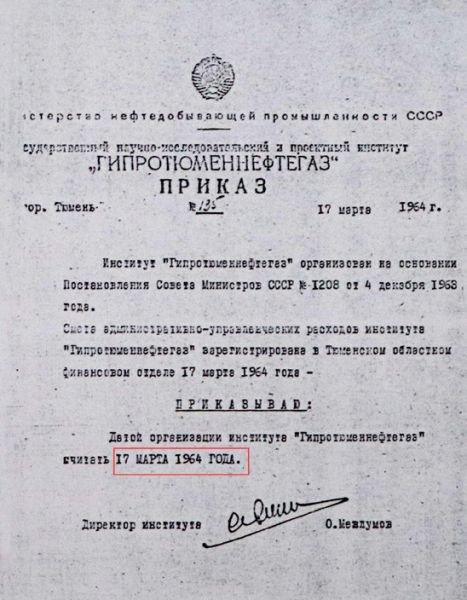 Затем Постановлением Совета Министров СССР от 4 декабря 1963г. «Об организации подготовительных работ по промышленному освоению открытых нефтяных месторождений и дальнейшему развитию геологоразведочных работ в Тюменской области» для руководства работой в регионе и было сформировано в 1964-м производственное объединение «Тюменнефтегаз».
