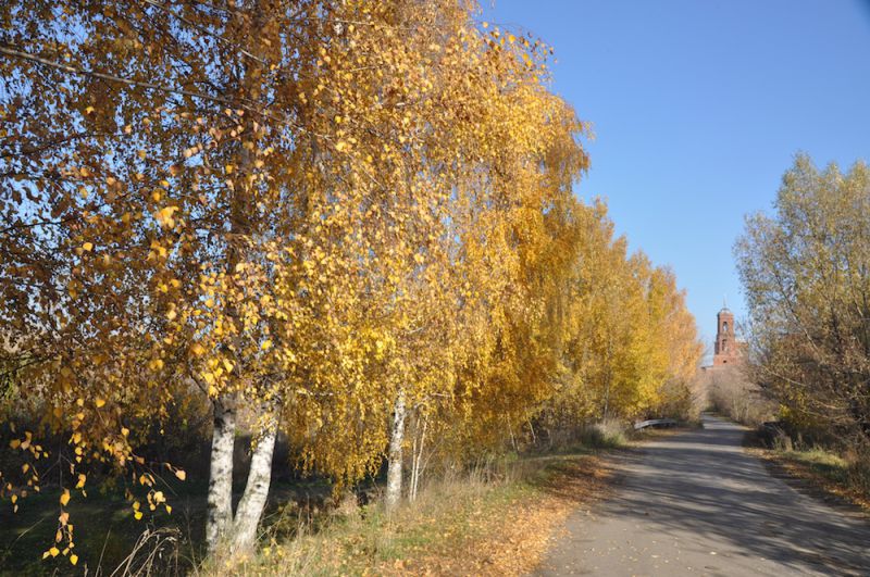 Перелески и встречаемые ровные ряды березовых посадок являлись воистину золотым обрамлением окружающих нас полей на фоне изумительно чистого голубого неба с редкими белыми кучевыми облаками. Вся природа наслаждалась последними теплыми лучами солнца в ожидании осенних дождей и зимних метелей… Сделав последнюю в этом щедром от природы, хоть и бездождевом, году попытку сходить за грибами, мы возвращались из ближайшей золотой посадки, домой в село Делехово. Подберезовики, волнушки и даже грузди еще находились, но отыскать их в толстом ковре свежих желтых листьев было очень проблематично.