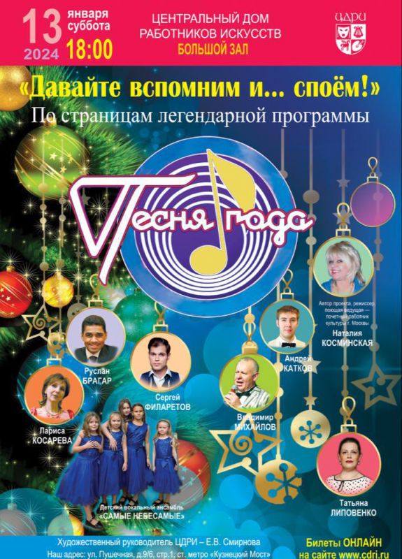Старый Новый год встречаем вместе с любимыми мелодиями! Место встречи- Центральный Дом работников искусств.