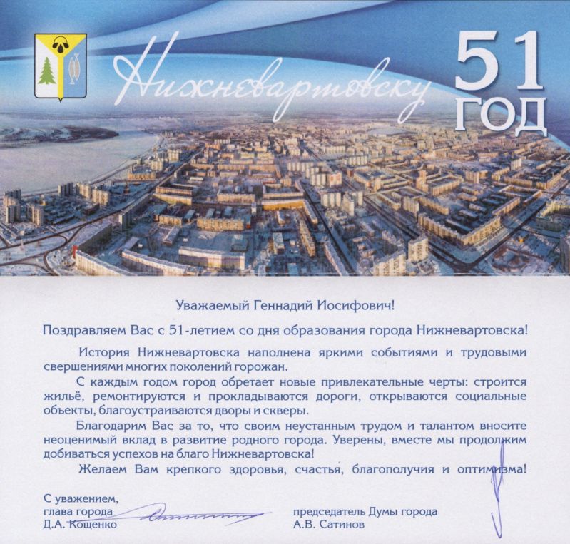 Вместе продолжим добиваться успехов на благо Нижневартовска!