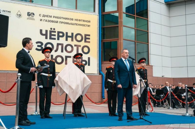 На фасаде Музея геологии, нефти и газа в Ханты-Мансийске торжественно открыли памятные знаки в честь выдающихся нефтяников – Владимира Алексеевича Абазарова и Виктора Иоганесовича Отта.
