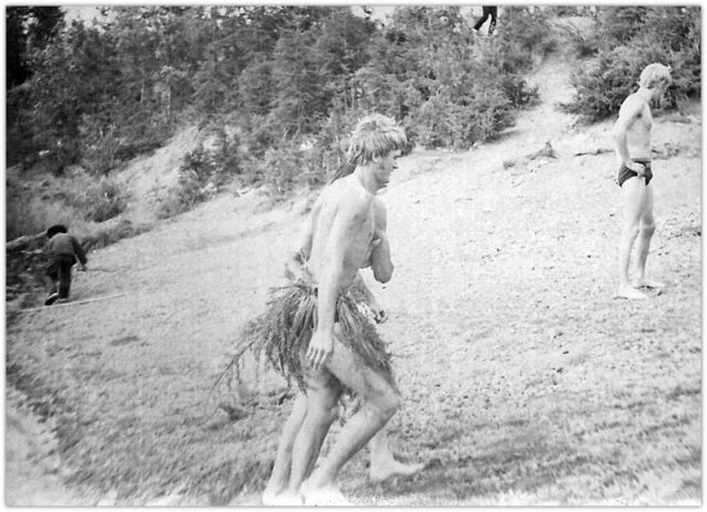 Наши повара Зина и Валя, как могли, старались разнообразить наше питание. Сложно представить, как им это удавалось, даже с помощью дежурного: готовили на костре. Правда, были и «нахлебники» – наши общие любимцы: строго по графику приходили 2 бурундучка. Освоились очень быстро и девчонок не боялись. Мы приносили кедровые шишки, и девчонки их отваривали для наших гостей. Их обеденный стол был прямо у порожка столовой. Посетил нас и незваный гость – медведь, после чего мы лишились полностью всех запасов сгущенного молока, многое было просто подавлено. Наш погребок он вскрыл очень аккуратно, ночью.