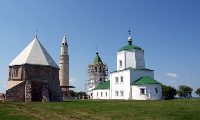 Немного истории. Первое упоминание о булгарах (то есть живущих на Волге) относится к 922 году, когда здесь был принят ислам. Но само поселение появилось гораздо раньше, во времена палеолита – 100 тысяч лет назад. Как первое феодальное государство, Волжская Булгария возникла в 9 веке и длительное время являлась единственно развитой на крайнем востоке Европы. Самым крупным ее городом был Булгар, превосходивший по площади Лондон, Париж, Киев, Новгород того времени. Столица застраивалась кирпичными и каменными зданиями, а еще здесь был водопровод. До наших дней сохранились Черные палаты, Ханская усыпальница, Соборная мечеть. Город торговал с Византией, Испанией, Китаем, Русью мехом, кожей, оружием, ювелирными и гончарными изделиями. Здесь были школы, свои поэты и ученые. Характерными элементами Булгарской бытовой культуры были изделия из золота, серебра, одежда, расшитая бисером, чеканились монеты. Сюда приезжали торговцы и купцы, как на ежегодную Всемирную ярмарку. Многие иностранцы имели здесь свои слободы и улицы.