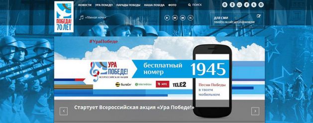 Начал работу официальный сайт празднования 70-летия Победы в Великой Отечественной войне may9.ru. Об этом сообщает Ассоциация землячеств г.Москвы. Посетители сайта смогут принять участие в голосовании за главную песню Победы, посмотреть любимые киноленты о военном времени, а 9 мая 2015 года в режиме онлайн увидеть Парады Победы из 14 городов России. Также можно ознакомиться с архивными фотографиями и кинохроникой времен Великой Отечественной войны и прослушать сводки Совинформбюро 1945 года. Пользователям мобильных сетей с 23 февраля доступно приложение "70 лет Победы!", разработанное для платформ IOS и Android. Оно позволяет установить гудок на телефон и мультимедиа-плеер с возможностью прослушивания песен о войне. Официальные представительства празднования 70-летия Победы заработали в социальных сетях "ВКонтакте", Facebook, "Одноклассники", "Мой Мир" и Twitter, где можно ознакомиться с информацией о мероприятиях, специальных проектах и проводимых в рамках празднования Дня Победы акциях, одна из которых - "Ура Победе!" Земляки, друзья, приглашаем вас принять участие в работе и акциях сайта. |