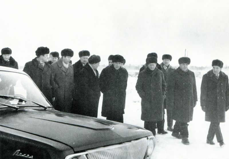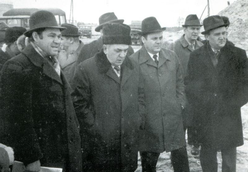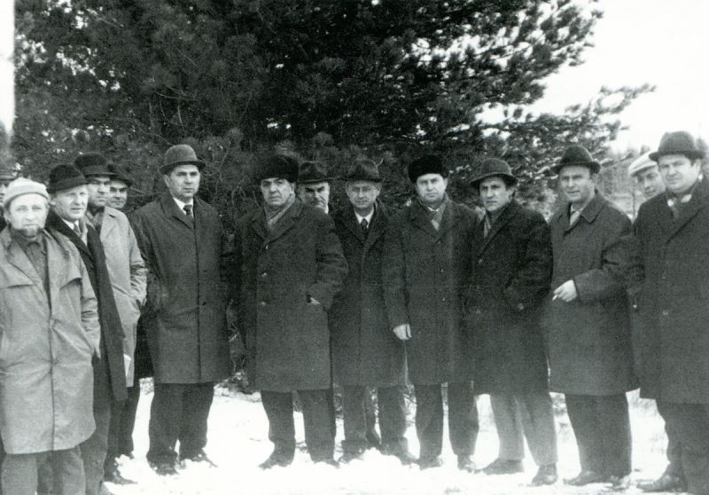 | На месте закладки Нового Уренгоя: П.С.Иванов, В.В.Стрижов, В.Г.Чирсков, Е.Н.Алтунин, Г.П.Богомяков, С.А.Оруджев, А.Н.Гурьев, В.Н.Тюрин, Е.Ф.Козлов, Н.И.Белый, В.Д.Батазовский, Г.А.Шемраев |
