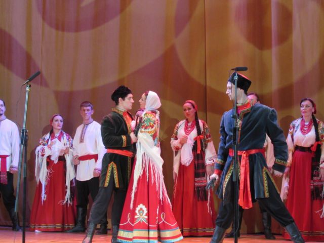 С первых номеров концерта у нас было ощущение, "как по сцене гуляет степной ветер и доносит нам аромат самобытных песен и танцев..." Звучали знаменитые: "Есть на Волге утес", "Ах ты, степь широкая", "Вниз по матушке по Волге" и, конечно, "Ах, Самара-городок", "Липа вековая", "Ивушка", "Волжские лирические страдания" и многие-многие другие песни. Особую роль в создание удивительной атмосферы на сцене и в зале внесли костюмы. Коллектив хора предстал богато и нарядно одетыми: мы увидели скоморохов, самарских купчих в меховых душегрейках, удалых казаков и простых горожан. Все танцы – настоящие шедевры, созданные талантливыми балетмейстерами: "Танец ямщиков", "Баюшки-баю", "Песенно-танцевальный хоровод", "Подушечка"... Музыкально-хореографические композиции были связаны единой сюжетной линией, что и стало полноценным музыкальным спектаклем и просто редкостным праздником.