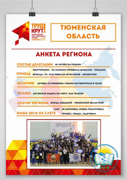 В Челябинске прошел Всероссийский слет студенческих отрядов, посвященный окончанию 56-го трудового семестра.  Более 2000 бойцов - представителей 72-х регионов страны приехали на это мероприятие, подводящее итоги года. Тюменская делегация была самой многочисленной - 70 человек (не считая хозяев слета – челябинцев). Она включала проводников, строителей, вожатых, а также ветеранов ССО.