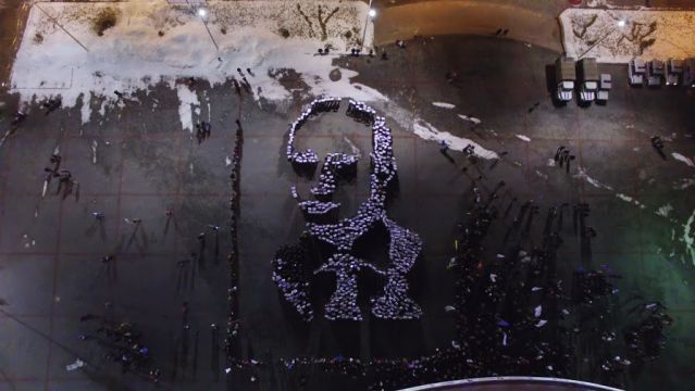 Владимир Путин также «побывал» на Всероссийском слёте студенческих отрядов. – Около 2 тысяч студентов и горожан потрясли Челябинск уникальной акцией на площадке перед ледовой ареной «Трактор». Взяв в руки белые листы бумаги, ребята выстроились таким образом, что сверху «живая инсталляция» напоминала портрет президента России.