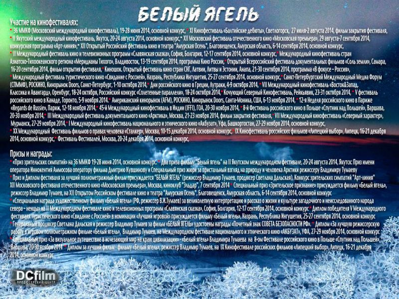 Общественная редакция портала Западно – Сибирского землячества в Москве приглашает Вас 16 января, в пятницу, на большую премьеру фильма "Белый ягель". Она состоится в Большом Зале Дома Кино (ул.Васильевская, д.13) в 19-00, вход свободный. Приглашение – на нашем портале.